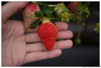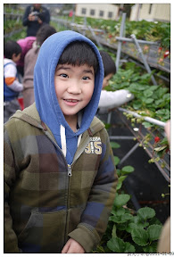 採草莓對對我們來說很平常,因為小孩喜歡嘛,每年總會帶小昕去採個草莓讓他過過癮,而且昕爸會要求小昕一定要剪整顆都紅咚咚的草莓,最好紅到發黑亮的,在高標準的要求下,小昕可是東挑西撿認真的挑選最佳賣相的草莓喔。